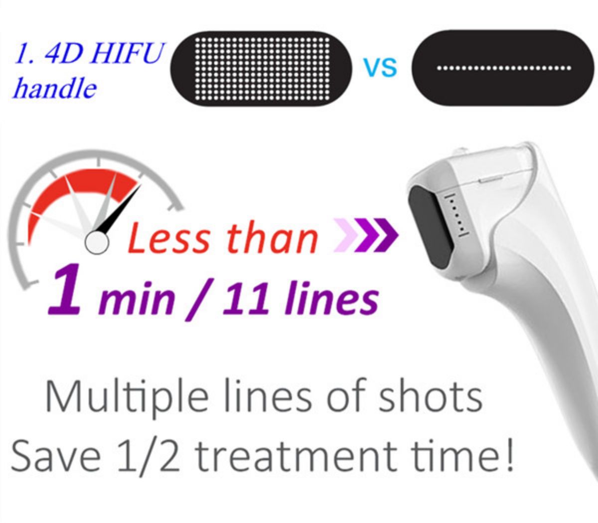 Our new latest product 2 in 1 4D beauty instrument (Radar line carving +4multi-line) can achieve three perfect effects of tightening skin ,removing wrinkle,shaping body.The most advanced part of 2 in 1 4D is the use of the most advanced ultrasonic energy, which can penetrate deep into the SMAS layer of the skin, causing immediate contraction of collagen and stimulating collagen fiber network, thus enhancing skin elasticity from the bottom layer (the self-repair mechanism is safer).This is the safest and most effective way to treat facial skin aging and sagging in the beauty industry.